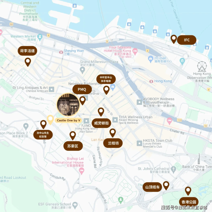 地处西半山卫城道 1 号,紧邻中环半山自动扶梯,步行 3 分钟可达。距港铁上环站、中环站约 500-700 米,双线交汇通达全港。周边巴士站点密集,多条线路覆盖港九新界。自驾便捷接入皇后大道中,快速衔接中区干线,轻松切换核心商圈与静谧居所。