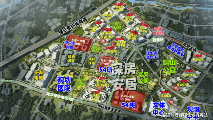 学校配套:项目规划5所幼儿园及3所九年一贯制学校(含72班、54班规模),其中72班制的学校已经确实是港中大附属学校,目前已经开工。根据2025年龙华区学区划分,小学对口观澜中心学校(省一级),初中为观澜二中或龙华第三外国语学校。