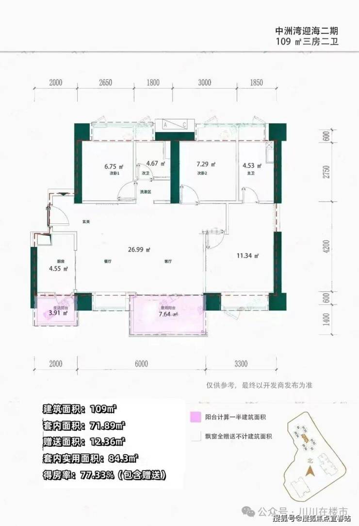 【户型面积】约96-109-125㎡中心3-4房