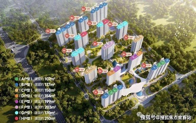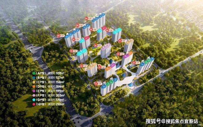 项目占地面积约57885.7㎡,建筑面积约为119173.26㎡, 容积率为1.4,绿化率为40%。共14栋住宅产品,共计554户。共计6个户型:A户型建面约107㎡,B户型建面约137㎡,C户型建面约158㎡,D户型建面约154㎡,E户型建面约199㎡,F户型建面约203㎡。