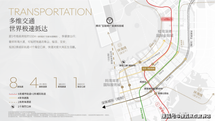 湾啟紫荆府距离5号地铁线“妈湾站”约550米,步行5分钟即可到达,1站到铁路公园站可换乘15号地铁线,深惠城际“前保站”距离约1公里,便捷通行,毗邻听海大道,快速通达南山,福田,宝安。