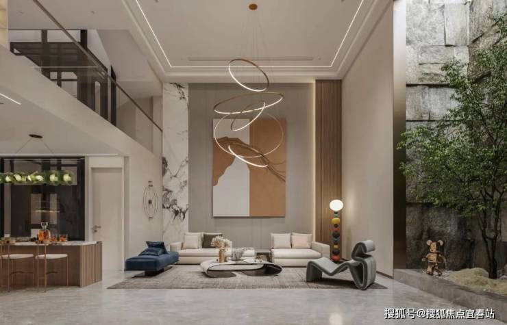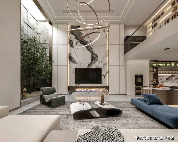 地下室两层充分利用,将阳光引入地下,绿意盎然,采光通透,整个空间感以及仪式感十足。B1B2层采用挑空客厅的设计,增加室内面积的同时,综合了更多休闲区功能。
