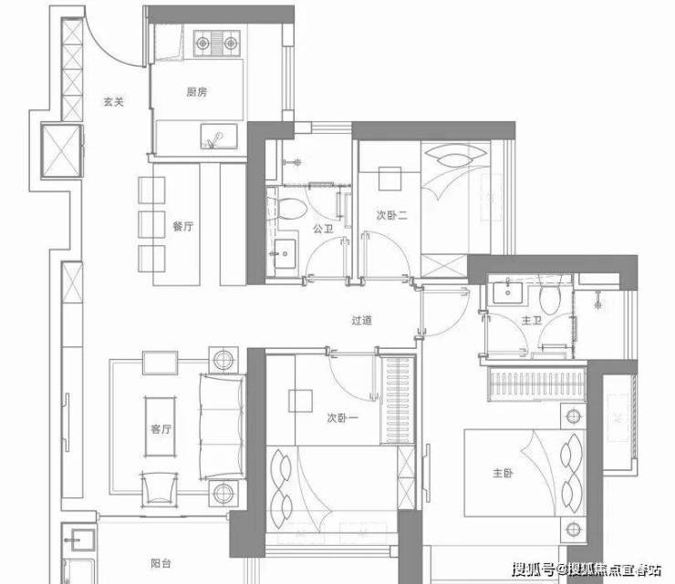 建面约103㎡3房2卫