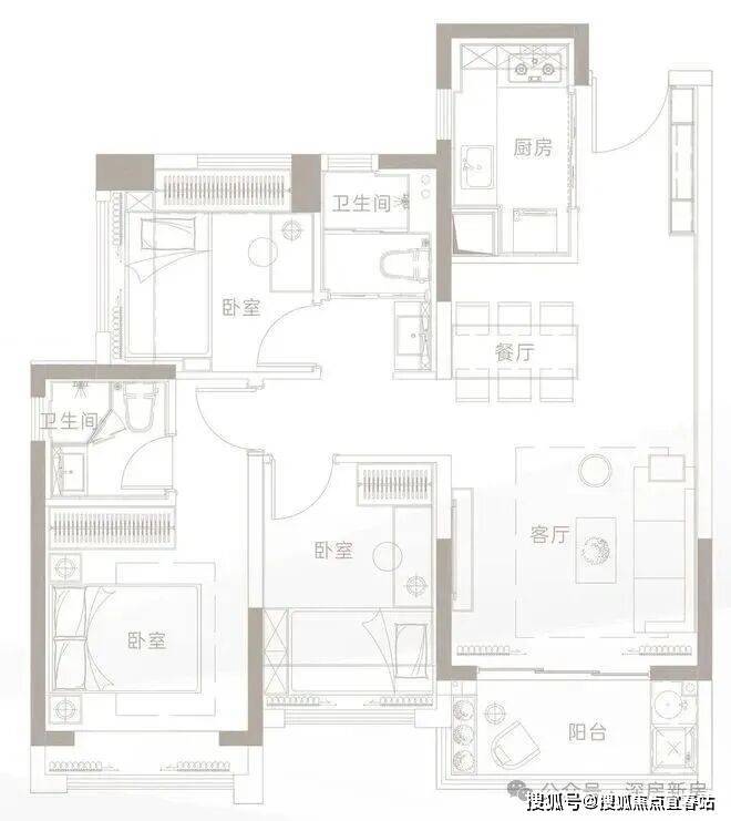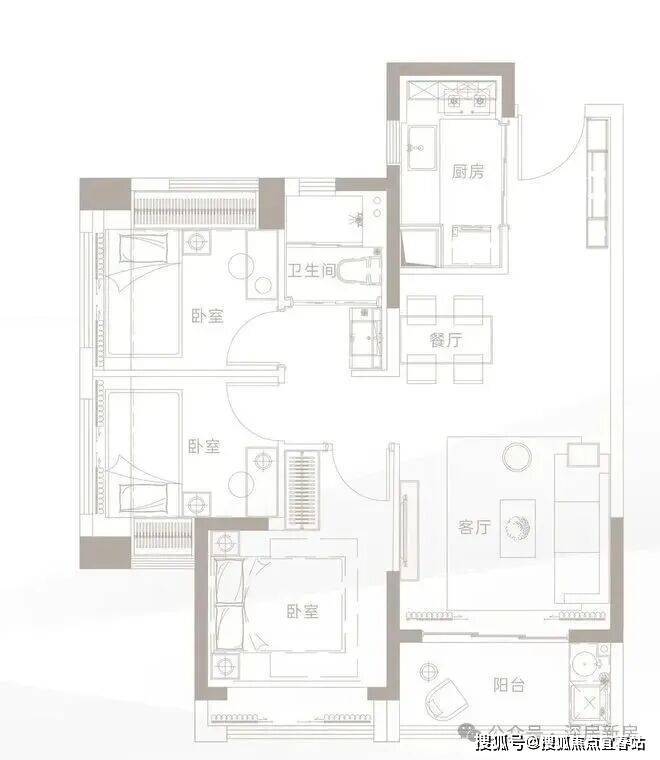 建面约79㎡ 3房2厅1卫