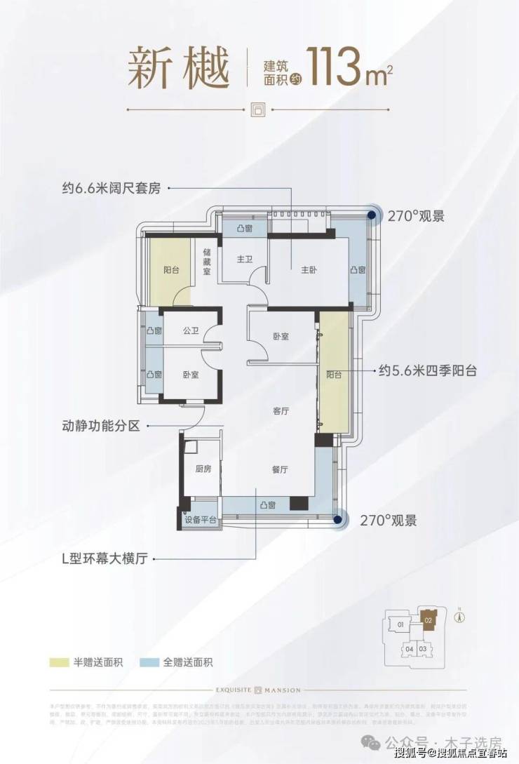 114㎡4房2卫折后总价768-807万,东北和西南通透。