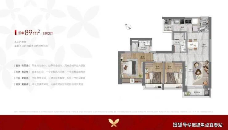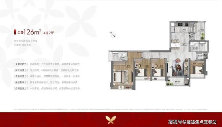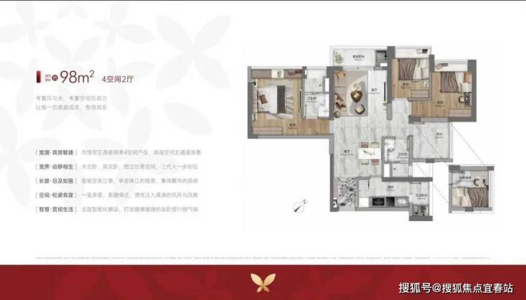 建面约98㎡一步到位四房,是白鹅潭百平内罕见配置,“0过道”高效格局,四开间望江+8个采光面,在清晨的江风与阳光里,从容开启三代同堂的温馨日常。