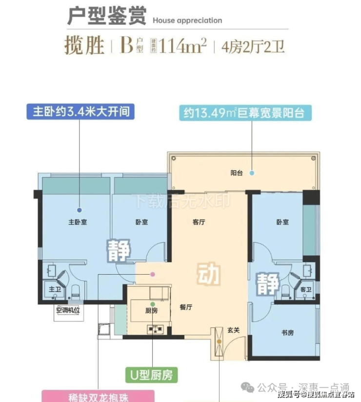 3.项目大户型113平米、114平米、141平米四房,都是看向科学公园景观,而且都是永久性风景