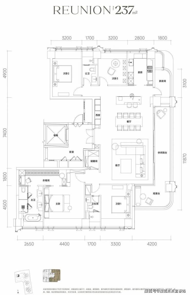 约237㎡ 四房三卫两厅、三面采光、双主卧套房、270°环幕视野。