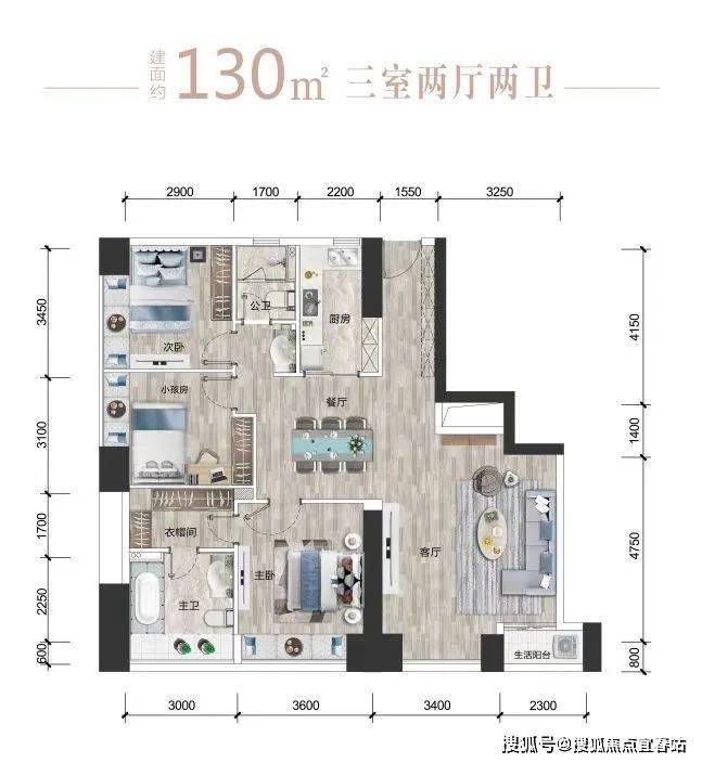 【户型④】北01+02/南10+11:约130㎡三房两厅两卫