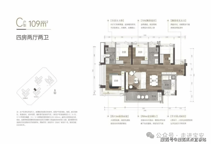 【产品面积】建面约95㎡/108㎡/109㎡/138㎡3-4房