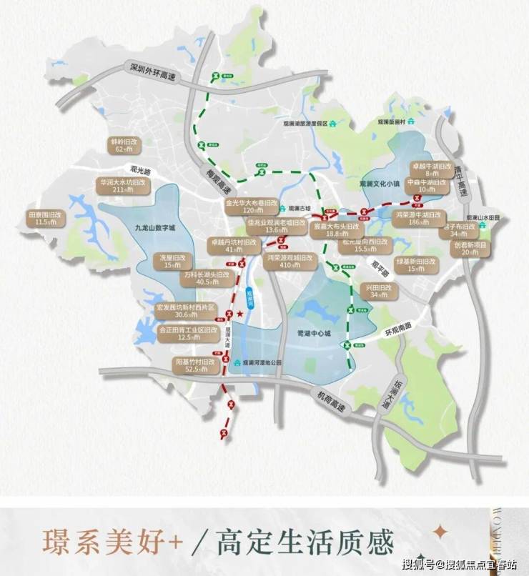 在深圳龙华“一圈一区三廊”战略版图中,鹭湖中心城作为龙华“行政+科技+文化”三重驱动的核心增长极,正依托千亿级鹭湖科技文化片区与观澜高新园产业集群,成为龙华北拓的战略高地-2-5。而由鹏瑞集团继深圳湾1号之后匠心打造的鹭璟府,正以“山湖现房、近100%得房率、深圳湾1号同源物业”的全维价值矩阵,成为龙华改善型市场中极具竞争力的品质标杆。项目雄踞龙华区观湖街道五和大道与澜清三路交汇处,地处鹭湖中心城核心腹地,北侧毗邻鹭湖滨水公园,南望樟坑径郊野公园,周边规划有“一山一湖四公园”生态格局,实现了“出则繁华、入则自然”的都市绿洲居住体验-3-4。