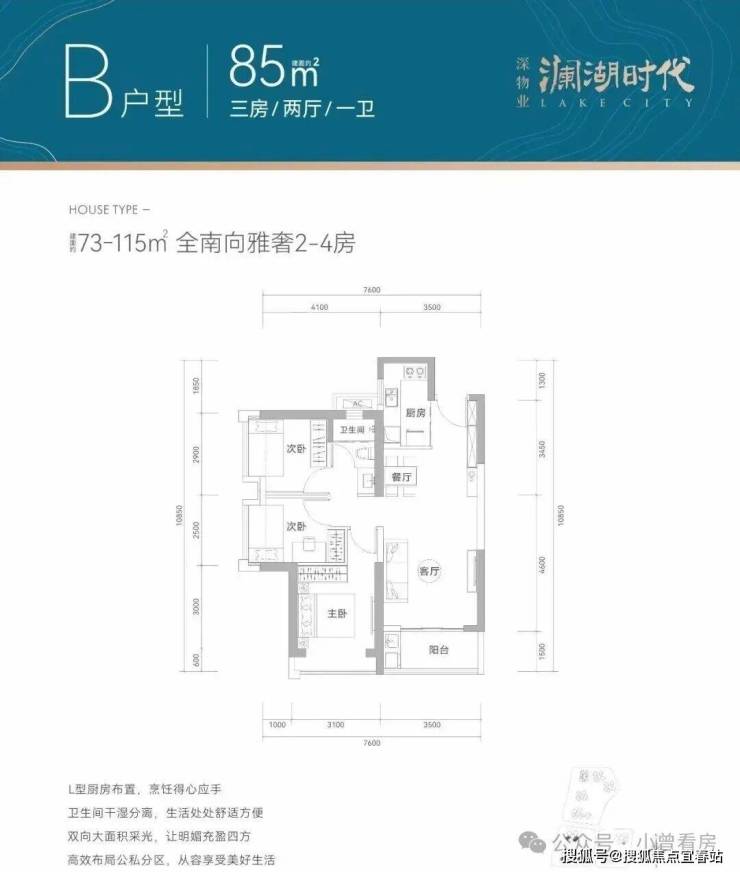 产品面积段:建面约73-115㎡全南宽奢2-4房