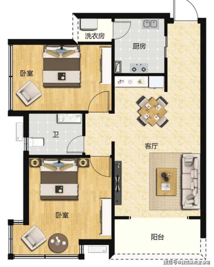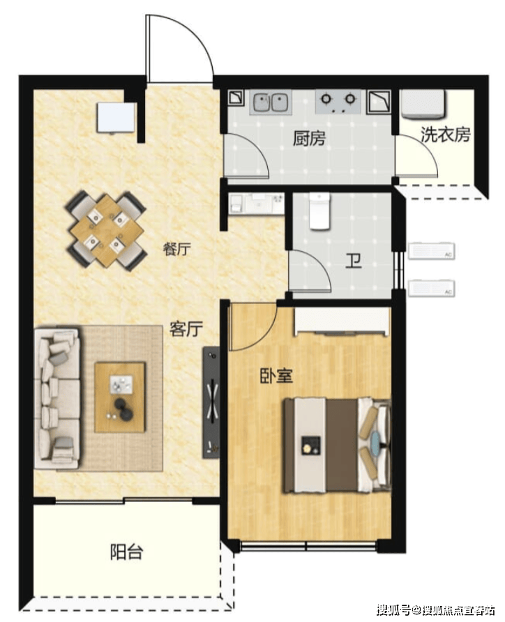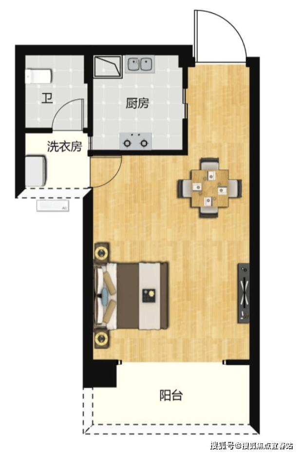 50㎡1房,带生活阳台,传统一房一厅布局。