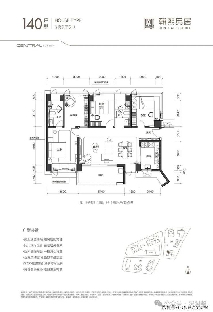 【建面140㎡3居】3室2厅2卫, 南·西南朝向,楼栋分布于2栋