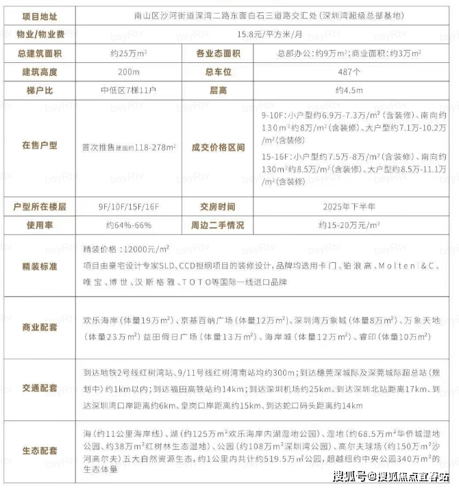 超总壹号位于深圳湾超级总部基地内,该片区是深圳唯一一座以“超级”命名的总部基地,也是深圳唯一一个全南向拥有一线海景资源的总部基地,总体规划投资约3000亿元,单位面积投资密度约10倍于前海核心区,有着“深圳曼哈顿”之称。