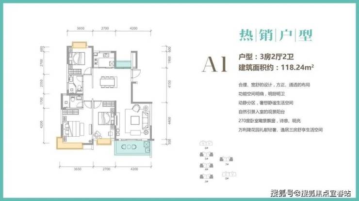 主力户型:住宅建面约104.95㎡-118.24㎡三房、商铺建面约78-414㎡ 沿街双层旺铺
