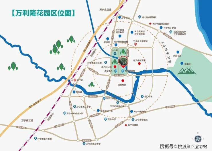 2公里5分钟抵达万宁高铁站