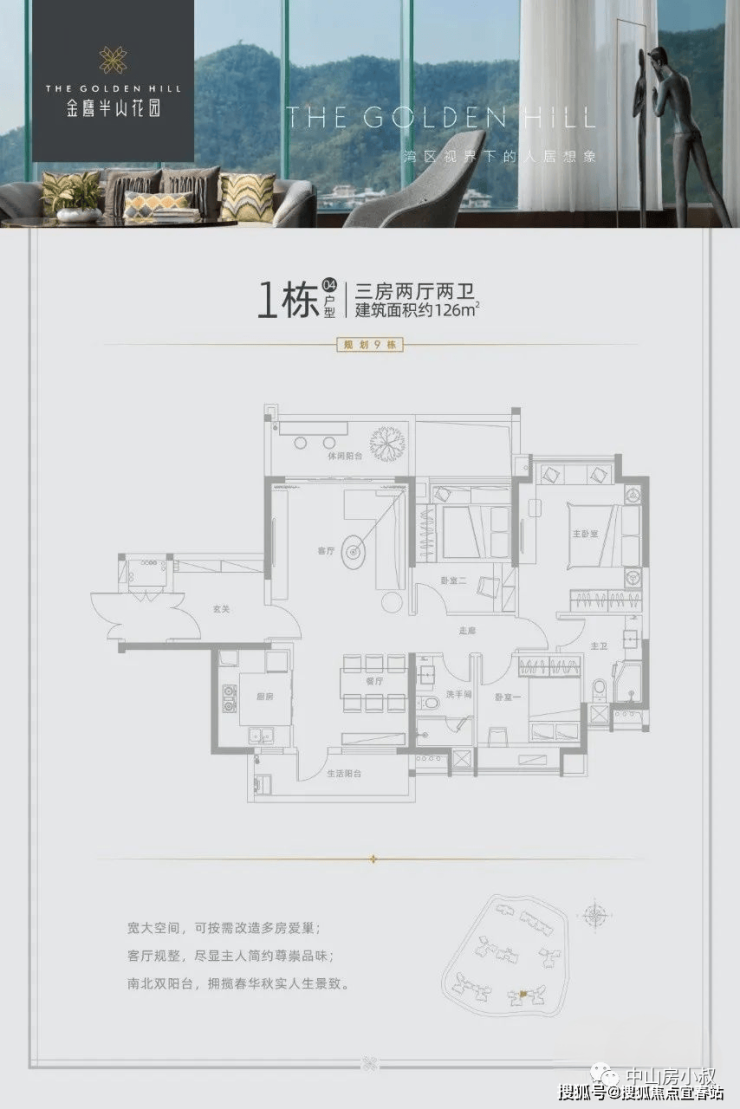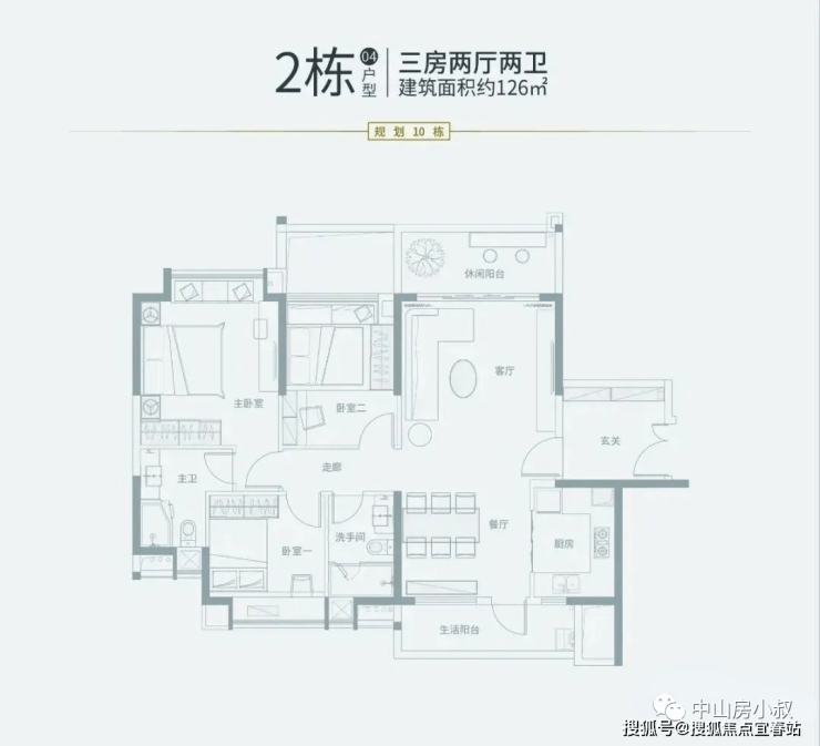 04户型:126㎡,3房2厅2卫(南北对流)