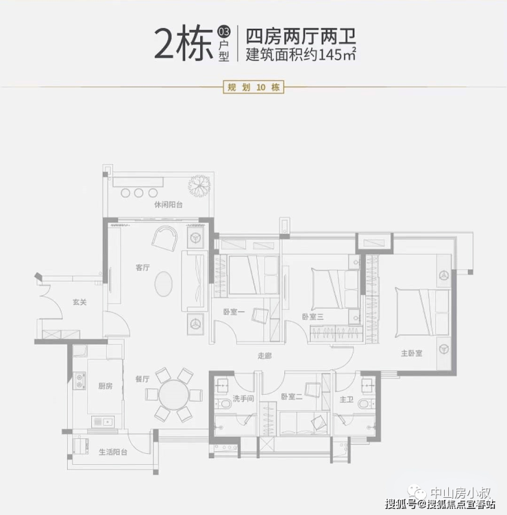 03户型:145㎡,4房2厅2卫(南北对流 )