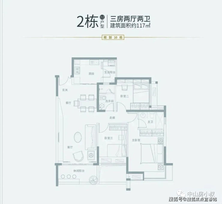 02户型:117㎡,3房2厅2卫(南,售罄)