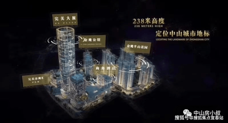 2、完美大厦(写字楼):238米,48层,中山唯一楼顶配备直升机坪,且16层-21层给招商引资部用来办公,未来人流量巨大