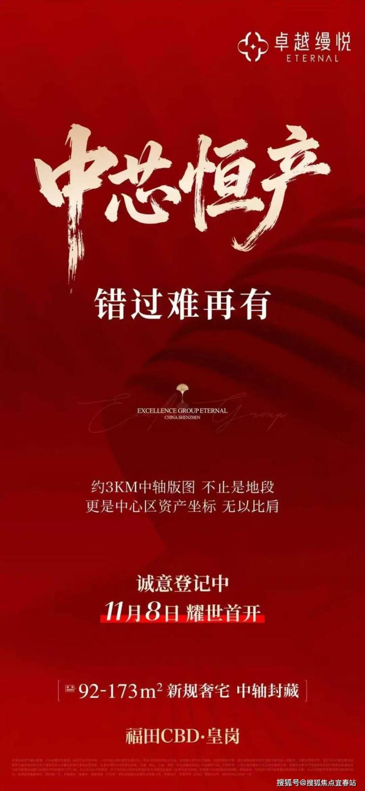最新消息:福田新盘住宅【卓越缦悦】目前诚意登记冻资中,截止到明天11月5日18:00,验资20万,冻资银行:农行/中信,11月8日上午开盘!据说开盘会有额外惊喜!有意向的客户可以选择先冻资,开盘优先选好房!