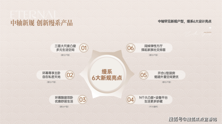 ◎中轴新规 缦系产品建面约92-173㎡三至四房缦系新规产品, 六大设计亮点,定义人居新境。