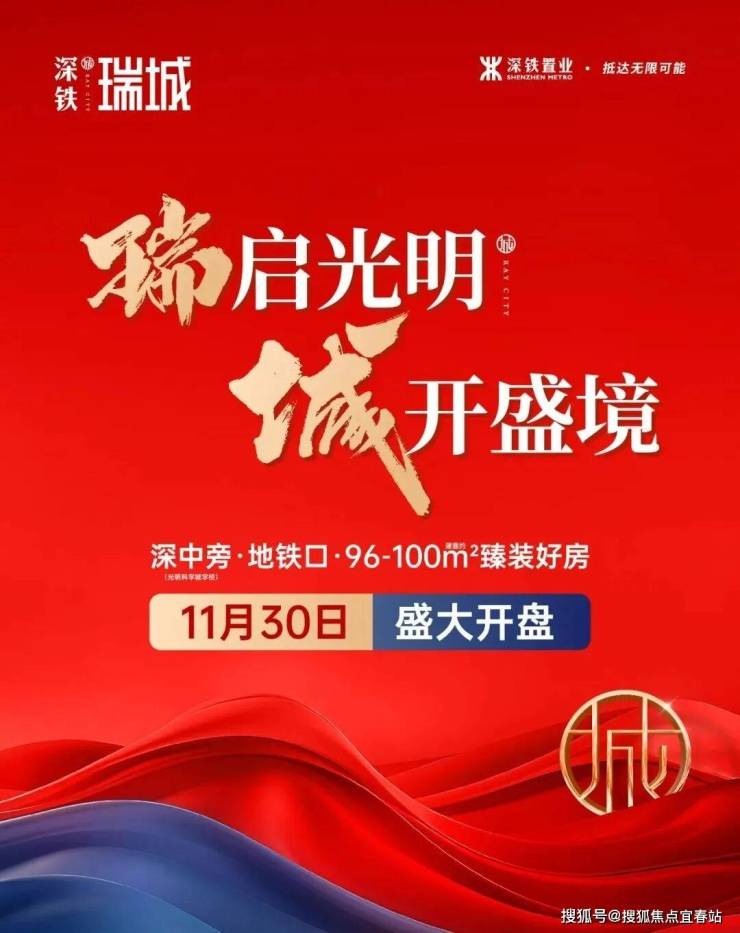 光明长圳,深铁瑞城2期11月22日已取证计划于11月30日入市,本次将首推25栋4座,共264套房源,面积有96-100㎡的3房2厅2卫户型,总高49层,3梯6户,预计在2026年6月份前带精装交房。