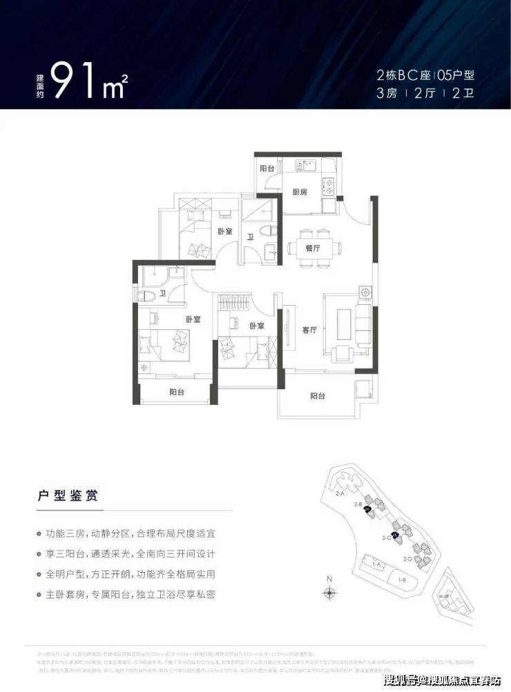 🏡罕见三阳台户型设计,奢阔开间,超高使用率