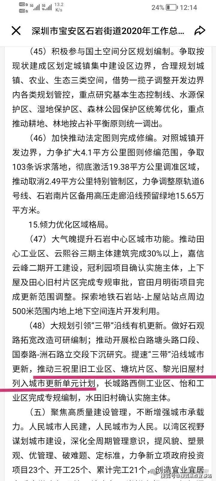图为深圳宝安石岩2020年工作报告