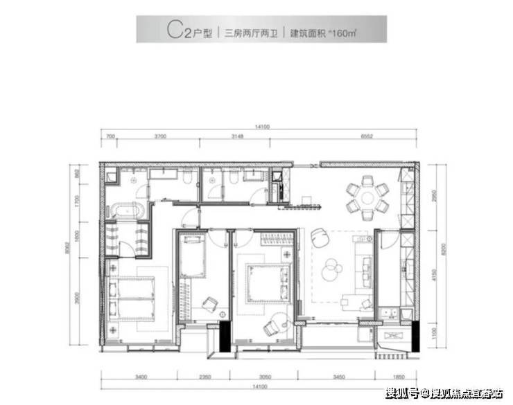 【面积】约90-160㎡(1-2-3房奢阔公寓)