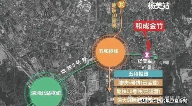 5号地铁线“扬美站”距离约200米,2站到“五和枢纽站”可以换乘10号地铁线/深大城际线,4站到“布吉枢纽站”可以换乘3/14号线,4站到“深圳北站枢纽”可以换乘4/6号线,还有高铁线路。