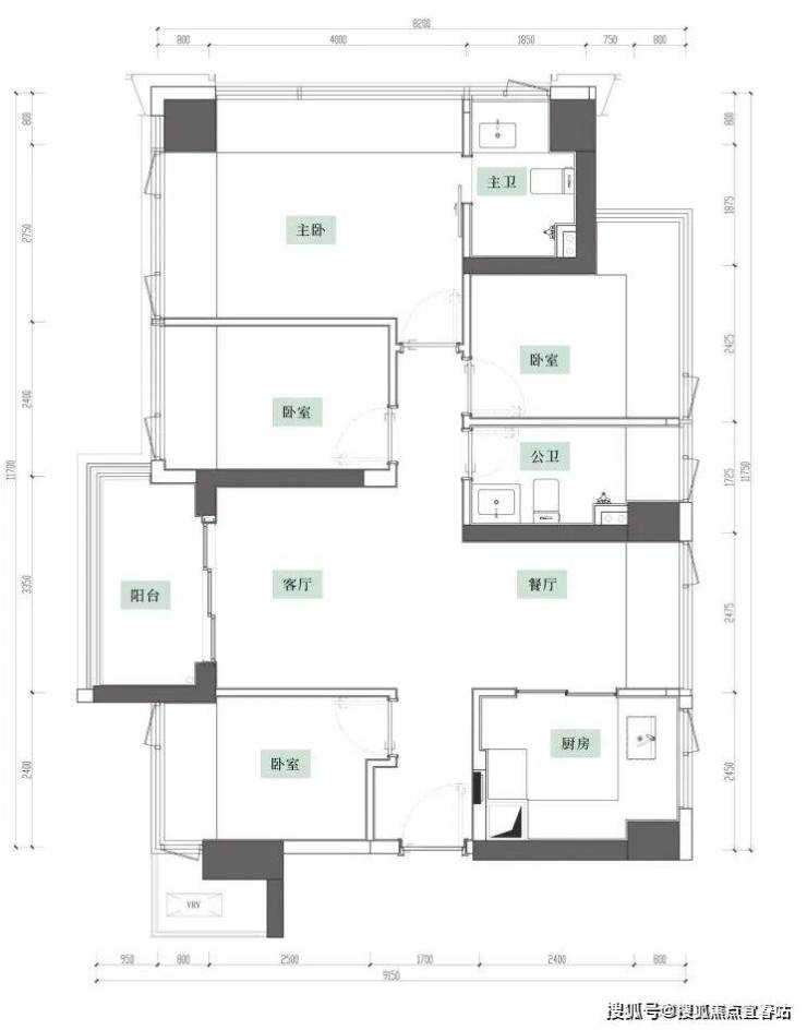 建面约93平户型,高实用率,在功能上做到了4房2厅2卫,在舒适度上做到了4开间朝南约11.7米采光面、双飘窗全明主卧,完全能满足一步到位的置业需求。