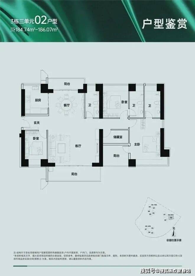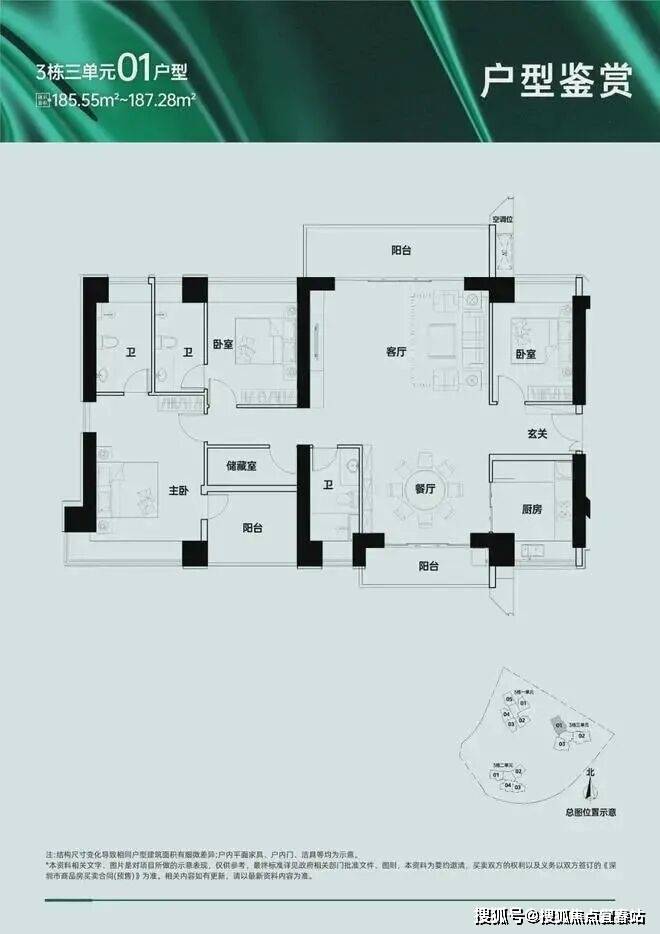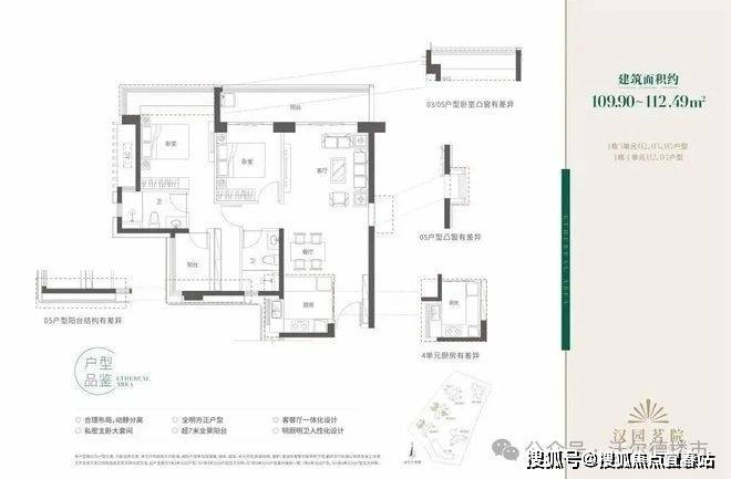 109-112 ㎡3房2厅2卫竖厅:经典竖厅布局,三、四单元,西北向,朝向地铁和城市道路,道路噪音对户型影响较大,高层视野开阔可俯瞰长岭陂水库和西丽生态绿地,背面阳台和边上的储物间可调整为一个房间,赠送面积较多,餐客厅方正,户型整体没有硬伤
