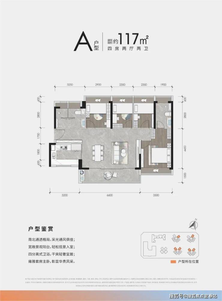 108㎡户型做的是横厅,动静分区,四房两厅一厨两卫一阳台的格局,这种户型最近几年非常常见了,优点就是横厅显得客厅更宽,有宽景阳台,室内通透性略好一些。