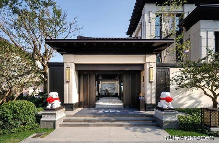 王府大门形制,结合现代工艺与材质,以对阵高墙关满园春色,打造尊贵礼序感府邸入口前庭;