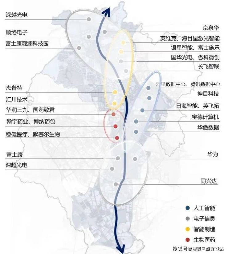 作为深圳都市圈北拓的重要节点,片区聚焦 “新产业、新赛道”,构建起 “1+2+3” 产业体系: