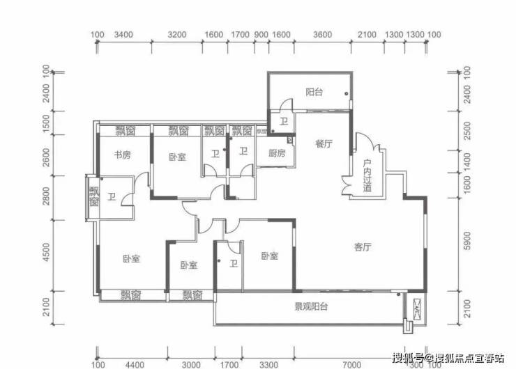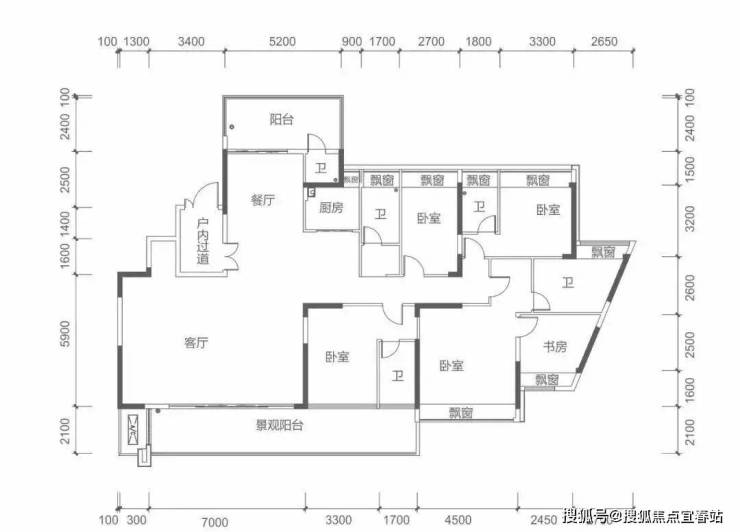 7栋奇数层 M户型建面约260㎡ 5房2厅5卫