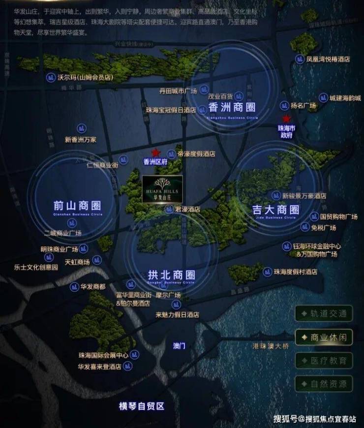 华发山庄,坐落于珠海主城区——香洲区核心。香洲,沉淀了40多年的醇熟配套与政经大脉,集萃着珠三角资金流和信息流,抵达澳门仅约5公里,距港珠澳大桥约10公里。由岁月积淀衍生的质变,往往是华发山庄此类顶豪的择址所在,增值契机不言自明。