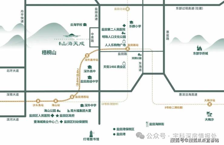 距地铁8号线“深外高中站”约750米,4站罗湖,12站福田,惠深沿海高速直达福田罗湖,惠盐路连接深圳龙岗中心方向,拥抱莲塘、沙头角双口岸,畅享深港生活圈。