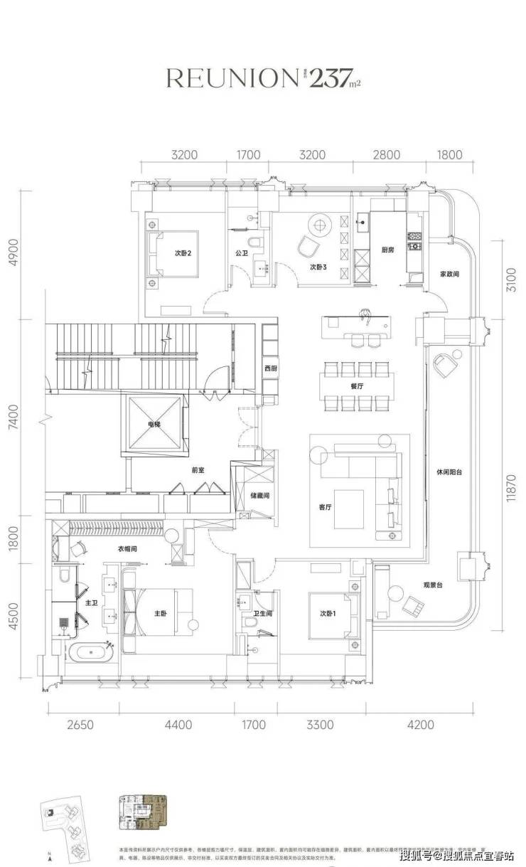 目前项目规划也已曝光:共有4栋住宅和1栋幼儿园,1、2、3栋的主力户型188-197-237-246㎡大平层。