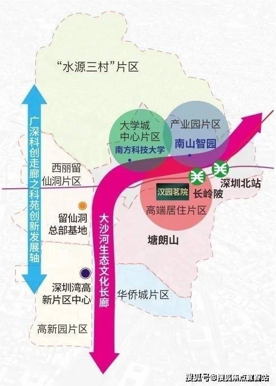 深圳“十四五”规划重点建设项目,大沙河创新走廊产学研全链条覆盖,串联起留仙洞、大学城、深圳湾等深圳经济科研实力最强的区。
