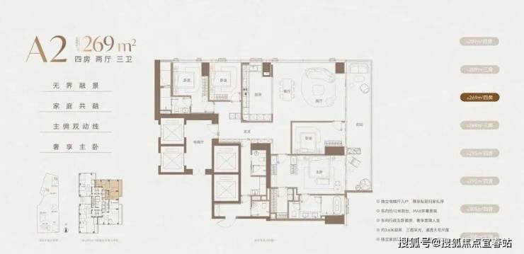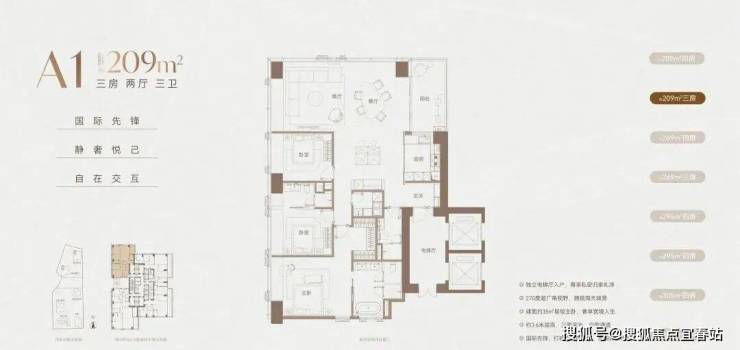 ①低中区5F起(150米以内)是约209-304㎡四房以上大户型;