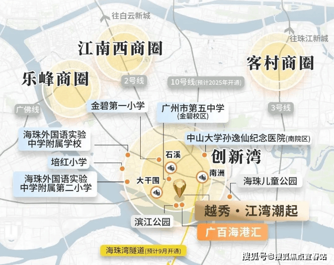 :依托海珠湾隧道(预计2025年通车),15分钟可直达广州南站,同时工业大道快速连接内环路,进一步提升交通便利性。