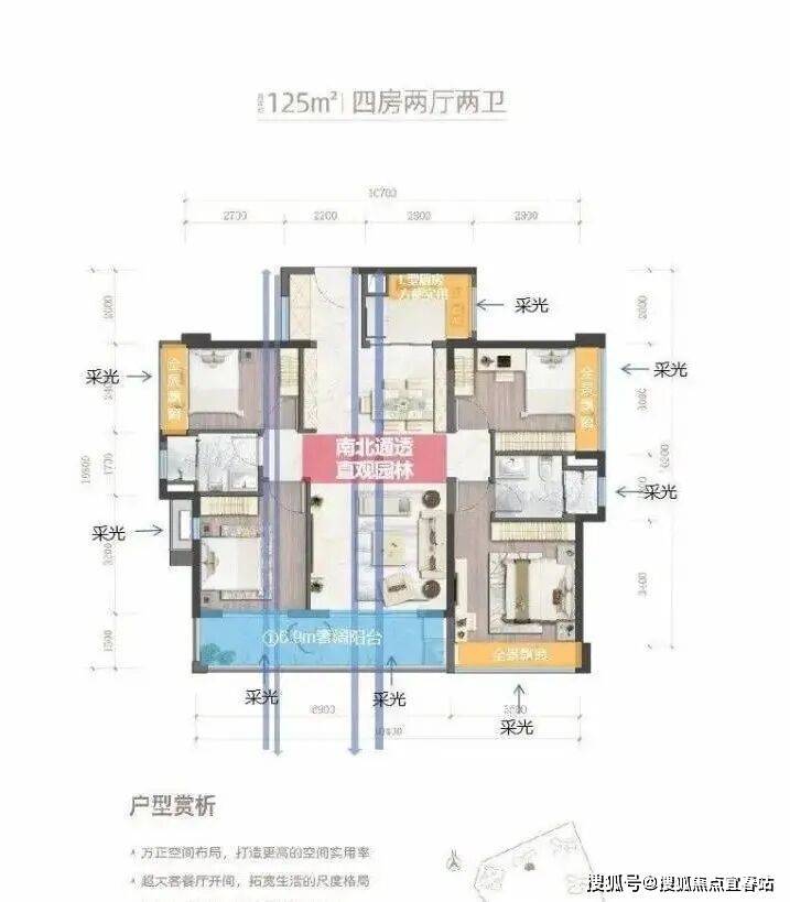 建筑设计:采用法式原萃经典 Art Deco 风格,外立面线条凹凸有致,独具特色。整体为 2 梯 3-4 户纯南向板楼设计,保证了充足的采光和通风。