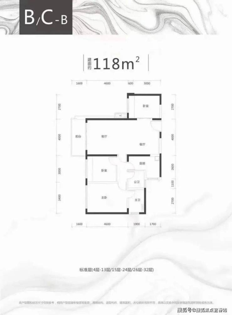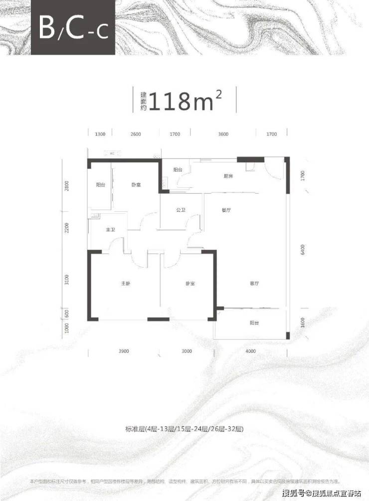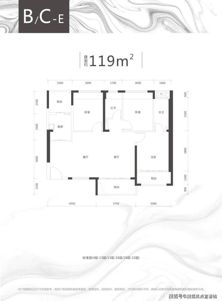 C栋B/C/E户型、约118-119㎡三房两厅两卫