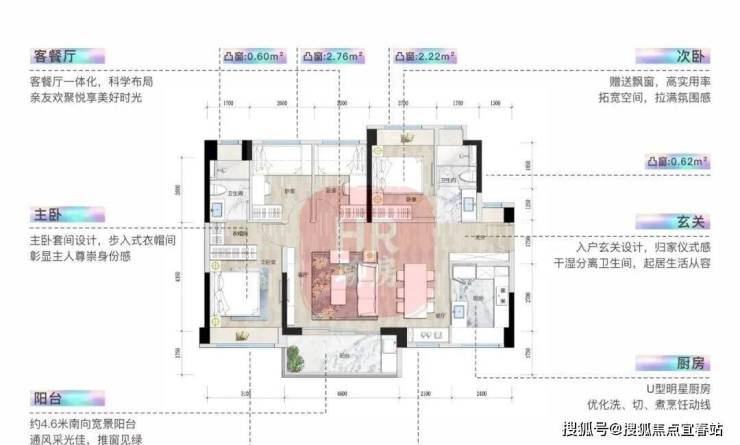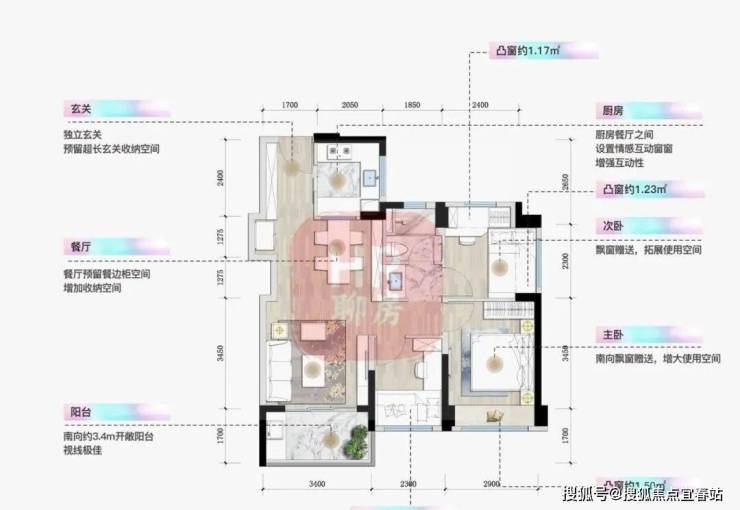 整体户型方正实用,多飘窗利用,79%超高使用率;