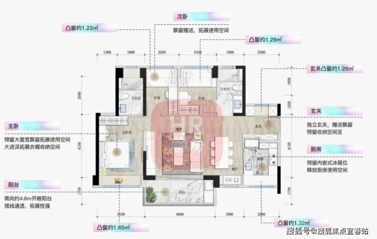 整体户型方正实用,多飘窗利用。