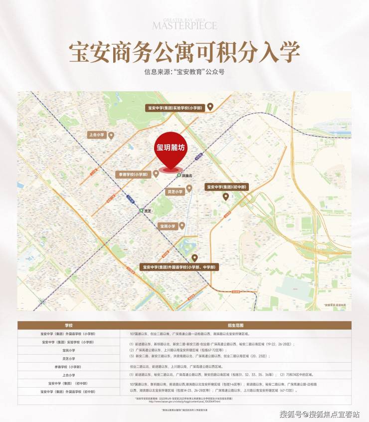 :宝安中学(集团)外国语小学部、宝安中学(集团)实验学校(小学部)、孝德学校、上合小学、宝民小学、灵芝小学,可满足孩子小学阶段的多样入学选择。