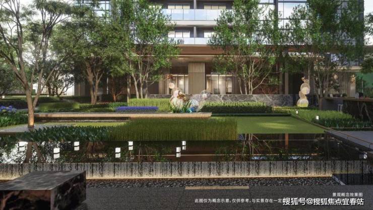 光影流转,疏影映池,多层叠级水景与大师艺术雕塑,借鉴宝格丽外在的奢华与内在的精致,精工匠造的技艺展示专属于阅臻府的高定艺术,呈现一幅空灵纯净、恬静雅逸的优雅氛围。